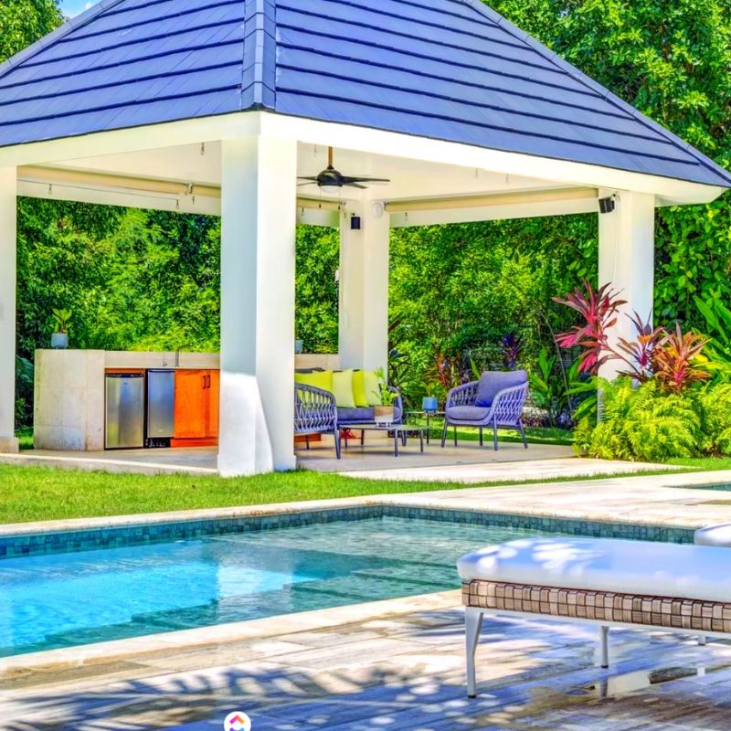 - Pools & Multi-Level Cabana Terrace: Features a swimming pool, heated whirlpool spa, chaise lounges, wet bar, and BBQ area, all set within exquisite tropical grounds.
